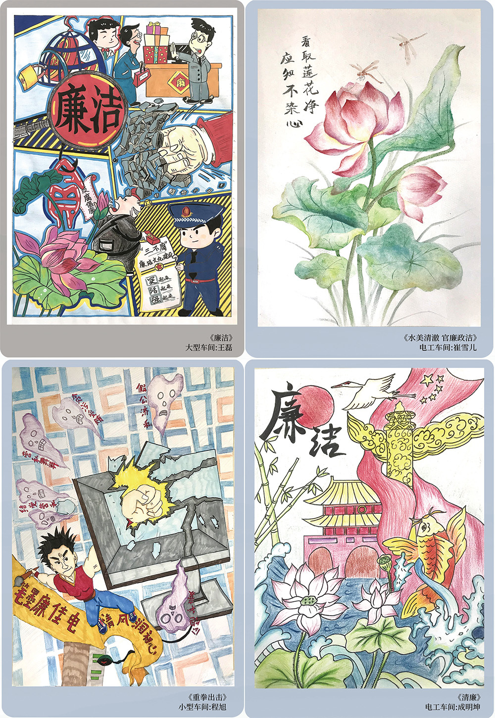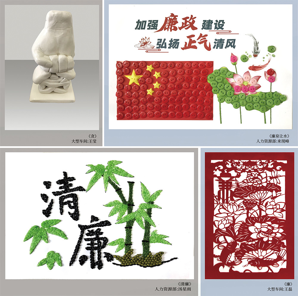 書畫言志,金石寄情。作品中既有以寓意廉潔高尚的“蓮”“竹”為元素的繪畫和幽默風(fēng)趣、構(gòu)思巧妙的漫畫,以廉政詩詞、格言警句為內(nèi)容的書法作品,也有驚艷奪目、精美細(xì)膩的五谷粘貼手工藝品,還有通過職工視角、別具一格的構(gòu)思,演繹拍攝出佳電廉潔文化故事。通過這些作品實(shí)現(xiàn)了廉潔文化與書畫藝術(shù)充分融合,增強(qiáng)了廉潔文化教育的吸引力、說服力、感染力和穿透力,展現(xiàn)了佳電股份廣大黨員干部職工防微杜漸、廉潔從業(yè)的信心和決心。