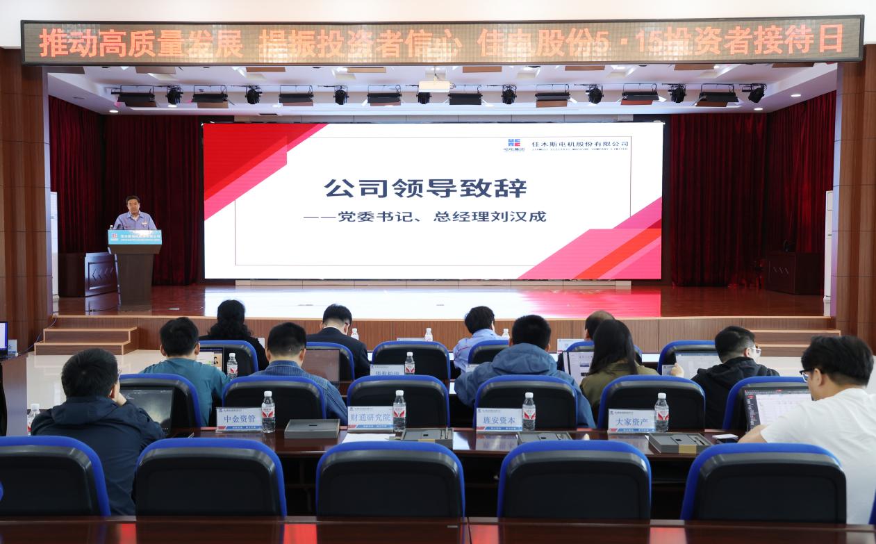 為全面貫徹落實(shí)黨的二十大精神,落實(shí)中央金融工作會(huì)議和新“國九條”相關(guān)部署,積極推進(jìn)上市公司投資者保護(hù)宣傳工作,根據(jù)黑龍江省證監(jiān)局《關(guān)于開展2024年“5?15全國投資者保護(hù)宣傳日”活動(dòng)的通知》要求,5月15日,哈電集團(tuán)佳木斯電機(jī)股份有限公司(以下簡(jiǎn)稱“佳電股份”)組織開展了以“向‘新’轉(zhuǎn)變 向‘質(zhì)’而行”為主題的投資者接待日活動(dòng),方正證券、中信證券、華安基金、宏道投資等近30余家機(jī)構(gòu)投資者走進(jìn)公司進(jìn)行交流互動(dòng)。佳電股份黨委書記、總經(jīng)理劉漢成出席會(huì)議并致辭,佳電股份總會(huì)計(jì)師韓思蒂、副總經(jīng)理鄭偉、動(dòng)裝公司黨委委員賈允參加活動(dòng)并圍繞主要產(chǎn)品、未來發(fā)展等方面內(nèi)容與投資者進(jìn)行了深入交流,佳電股份董事會(huì)秘書王紅霞主持會(huì)議。