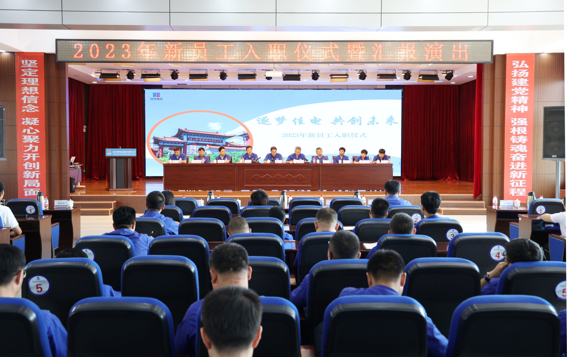 佳電股份相關(guān)單位負(fù)責(zé)人和83名2023年新入職大學(xué)生參加儀式。