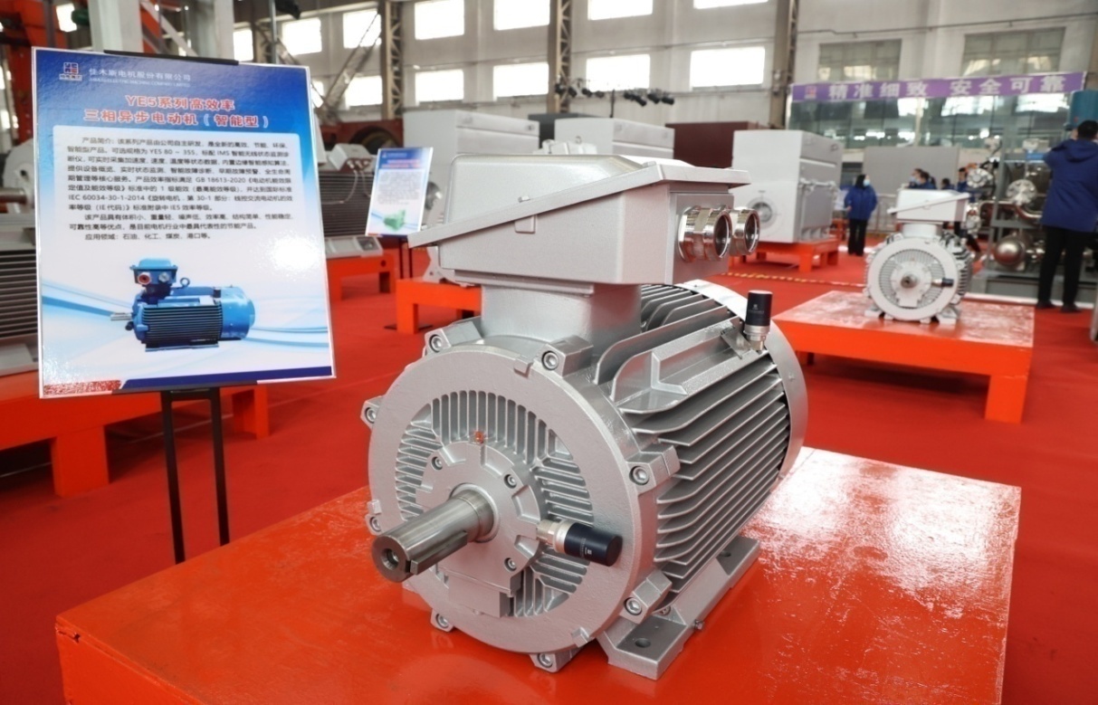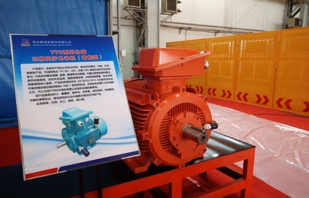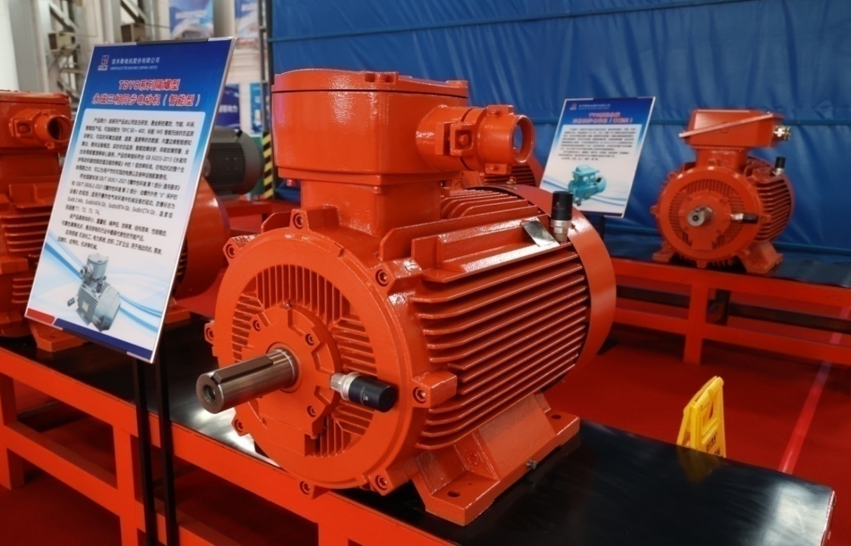 本次發(fā)布會展出的TBYC系列高效率隔爆型永磁三相同步電動機(智能型)、TYC系列永磁三相同步電動機(智能型)產(chǎn)品,依靠永磁體所提供的磁能替代了傳統(tǒng)電機電勵磁產(chǎn)生的磁能,具備電機損耗低、運行可靠性高的特點。在負載較低時,產(chǎn)品仍可保持較高的運行效率和功率因數(shù),解決了機械設(shè)備在低負荷時能耗消耗大的問題。其中部分規(guī)格可配備智能監(jiān)測終端產(chǎn)品,可實時采集加速度、速度、溫度等狀態(tài)數(shù)據(jù),內(nèi)置邊緣智能感知算法,可提供設(shè)備概覽、實時狀態(tài)監(jiān)測、智能故障診斷、早期故障預(yù)警、全生命周期管理等核心服務(wù)。同時,產(chǎn)品效率指標能夠滿足1級能效要求,在電動機的整個生命周期內(nèi),可以為用戶節(jié)約可觀的電費以及各種設(shè)施配套費用,是工信部“能效之星”推薦產(chǎn)品,可應(yīng)用于石油化工、電力系統(tǒng)、紡織、工礦企業(yè)以及拖動風機、泵類等機械。