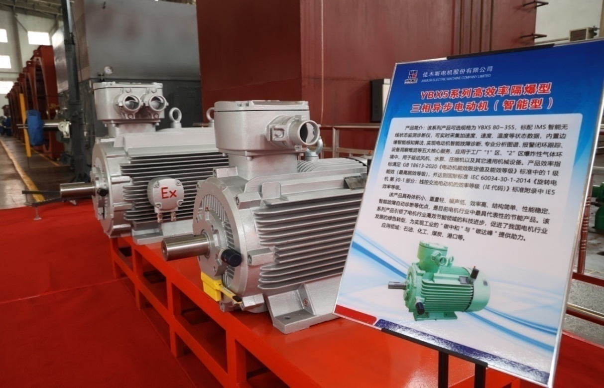 佳電股份智能高效電動機涵蓋YE5、YBX5、YBX3、YJKK/YJKS、YXKK/YXKS、YBF等高、低壓系列。智能高效電動機配備智能監(jiān)測終端產(chǎn)品,可實時采集加速度、速度、溫度等狀態(tài)數(shù)據(jù),內(nèi)置邊緣智能感知算法,可提供設(shè)備概覽、實時狀態(tài)監(jiān)測、智能故障診斷、早期故障預(yù)警、全生命周期管理等核心服務(wù)。同時,產(chǎn)品效率指標能夠滿足1級能效要求。其中,YE5/YBX5系列高效率三相異步電動機(智能型)具有體積小、重量輕、噪聲低、效率高、可靠性高等優(yōu)點,是目前電機行業(yè)中最具代表性的節(jié)能產(chǎn)品;YBX3系列高效率隔爆型高壓三相異步電動機(智能型)具有結(jié)構(gòu)緊湊、效率高、噪聲低、振動小、可靠性高、安裝維護方便且具備智能故障自動診斷等優(yōu)點,其設(shè)計、制造、檢驗和試驗既符合國家的相關(guān)標準,又符合IEC標準的相關(guān)規(guī)定,可完全替代進口電機,性能參數(shù)達到同行業(yè)領(lǐng)先水平;YXKK系列高壓三相異步電動機(智能型)能夠滿足GB/30254-2013中的2級能效要求,性能指標達到國內(nèi)領(lǐng)先,國際先進水平,具有振動小,噪聲低,安裝維護方便等特點;YJKK系列高效率高壓三相異步電動機(智能型)是YXKK系列的升級產(chǎn)品,該產(chǎn)品優(yōu)化了結(jié)構(gòu)要素和性能要素,提升了換熱效率、提高了功率密度,降低了單機重量和材料用量,性能指標實現(xiàn)了最優(yōu)配置,其綜合性能指標達到國際先進水平,可完全實現(xiàn)進口電動機國產(chǎn)化,促進了我國高壓箱式電機技術(shù)的快速發(fā)展;YBF系列高效風機用高壓隔爆型三相異步電動機(智能型),采用載荷更大重載系列軸承,可承受較大軸向、徑向負荷,可用于煤礦通風設(shè)備。