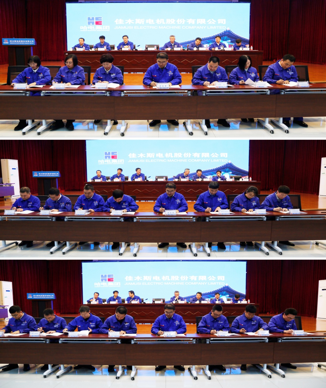 會(huì)上,劉清勇同志代表佳電股份黨委與各直屬黨組織、黨建工作部、紀(jì)委辦公室簽訂了《2023年度全面從嚴(yán)治黨責(zé)任書》;姜清海同志代表總經(jīng)理部與各直屬單位簽訂了《2023年度生產(chǎn)經(jīng)營目標(biāo)責(zé)任狀》。