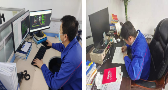 為保證公司重點合同按期交貨,重點項目有序推進,設(shè)計部堅持防疫和工作兩不誤,迅速將駐廠員工分成高、低壓兩個工作小組,在負責疫情防控工作的同時,全力投入售前資料的申請工作,優(yōu)先處理重點合同、重點項目的急要申請。居家員工線上辦公,通過OA辦公軟件,遠程開展技術(shù)協(xié)議審查、技術(shù)問題回復等工作。隨著駐廠人數(shù)的逐漸增加,設(shè)計部成立了工作突擊隊,持續(xù)跟蹤,全力以赴保市場、保進度。截至目前,設(shè)計部突擊隊已有28人駐廠復工,各設(shè)計室每天晚間統(tǒng)計上報當日工作進展情況,尾余工作數(shù)量,重點合同、重點項目進展情況,積極推進項目建設(shè),全過程跟蹤重點產(chǎn)品生產(chǎn)制造。確定了主氦風機試驗臺架建設(shè)部分最終施工方案并有序推進;跟蹤重點產(chǎn)品以及重點核電項目的裝配進度,解決了制造過程中的技術(shù)問題;完成了重點用戶急要高壓方箱電機技術(shù)資料下發(fā)和重點產(chǎn)品線上視頻技術(shù)交流等工作。
