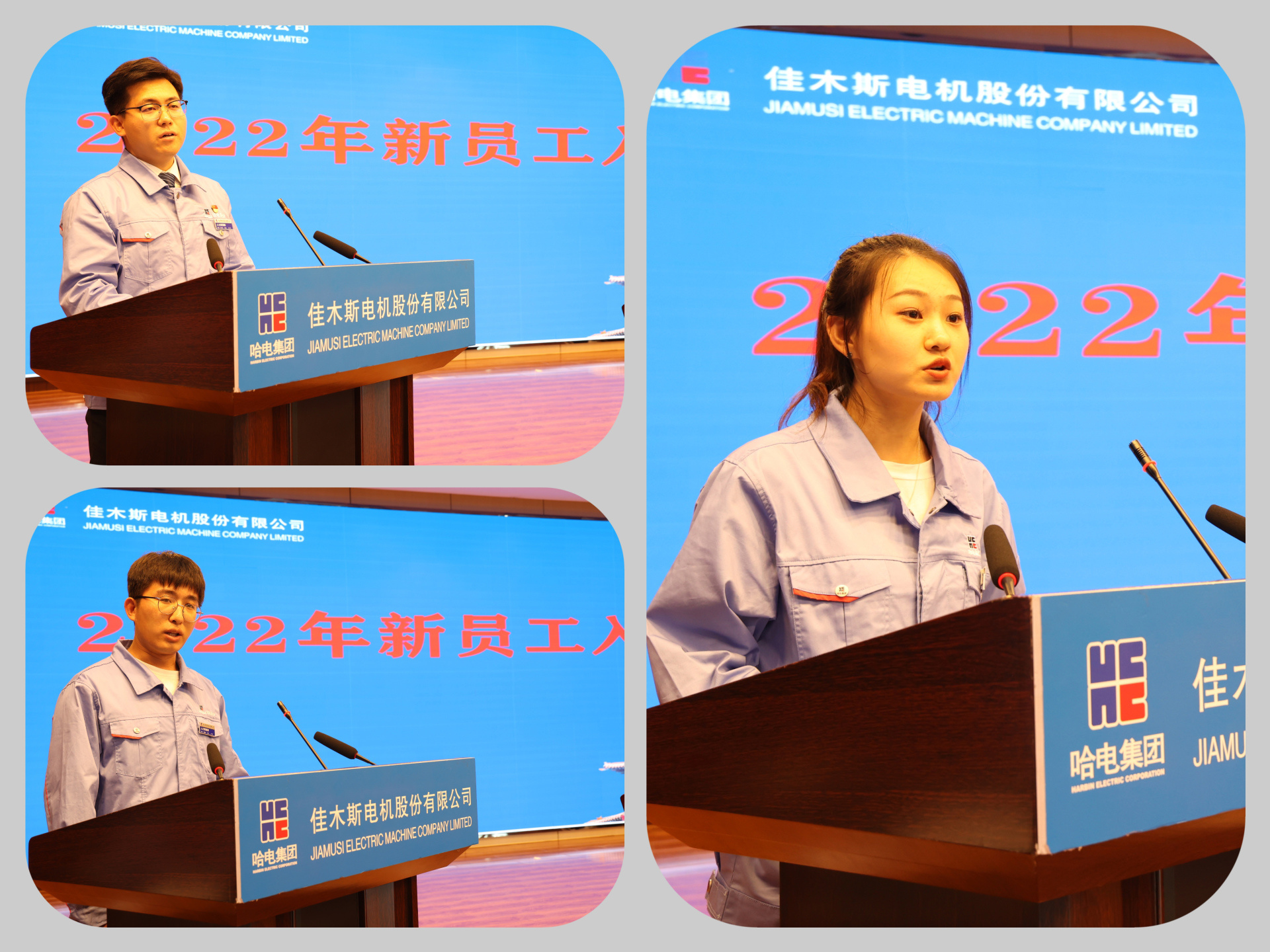 在入職儀式上,3名新員工代表進(jìn)行發(fā)言,他們用真摯樸實的話語講述了認(rèn)識佳電、融入佳電的過程和感受,用堅定昂揚的態(tài)度展現(xiàn)了他們奮斗青春、暢想未來的勇氣與責(zé)任。