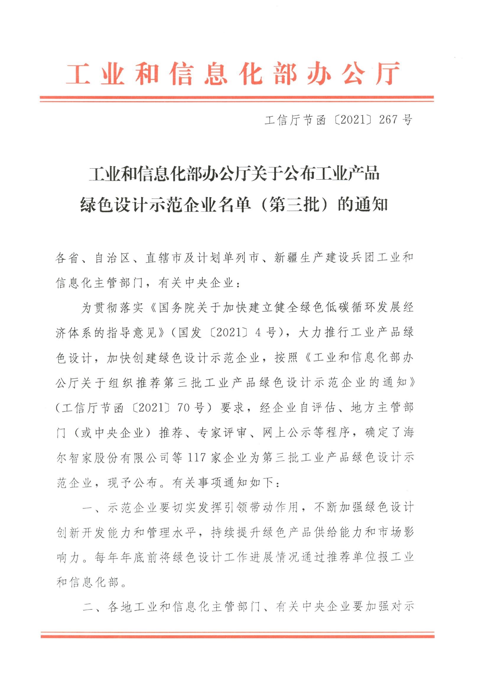 佳電股份積極強(qiáng)化綠色設(shè)計(jì)創(chuàng)新開發(fā)能力和管理水平,持續(xù)提升綠色產(chǎn)品供給能力和市場影響力,于2021年11月,被國家工業(yè)和信息化部評為國家級“綠色產(chǎn)品設(shè)計(jì)示范企業(yè)”,成為黑龍江省唯一一家入選第三批工業(yè)產(chǎn)品綠色設(shè)計(jì)示范企業(yè)。