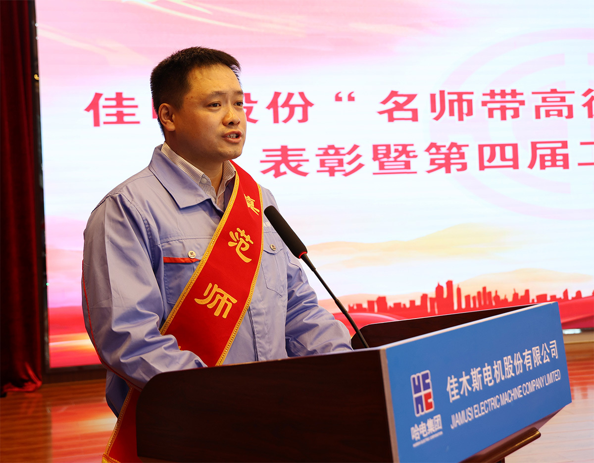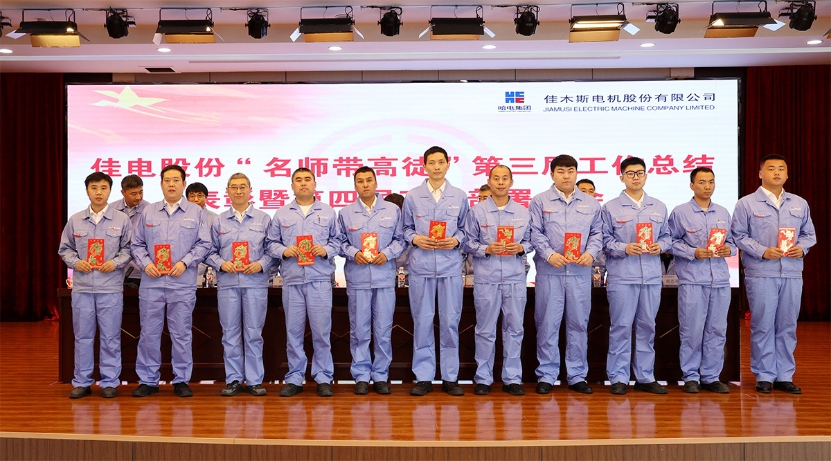為深入學(xué)習(xí)貫徹黨的二十大和二十屆三中全會(huì)精神,貫徹落實(shí)習(xí)近平總書記關(guān)于產(chǎn)業(yè)工人隊(duì)伍建設(shè)改革的重要指示精神,大力弘揚(yáng)“勞模精神、勞動(dòng)精神、工匠精神”,充分發(fā)揮生產(chǎn)技術(shù)骨干人才的“傳幫帶”作用,9月27日,哈電集團(tuán)佳木斯電機(jī)股份有限公司(以下簡(jiǎn)稱“佳電股份”)召開“名師帶高徒”第三屆工作總結(jié)表彰暨第四屆工作部署大會(huì)。佳電股份黨委書記、總經(jīng)理劉漢成出席會(huì)議并講話,佳電股份黨委副書記、工會(huì)主席劉亨主持會(huì)議,佳電股份領(lǐng)導(dǎo)班子成員出席會(huì)議。