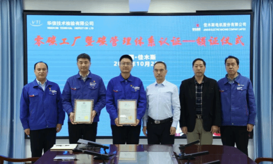 10月27日,華信技術(shù)檢驗有限公司在哈電集團佳木斯電機股份有限公司(以下簡稱“佳電股份”)舉行零碳工廠暨碳管理體系認(rèn)證頒證儀式,佳電股份獲評《碳管理體系認(rèn)證證書》與《零碳工廠評價證書》,成為國內(nèi)電機行業(yè)首家通過《零碳工廠評價規(guī)范》新標(biāo)準(zhǔn)認(rèn)證的企業(yè),標(biāo)志著佳電股份在高端化、智能化、綠色化發(fā)展道路上邁出的關(guān)鍵一步。