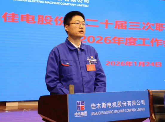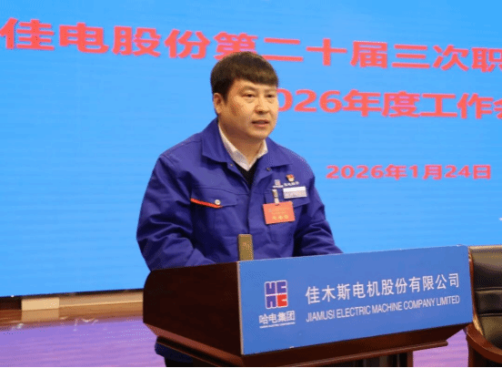 1月24日,哈爾濱電氣集團(tuán)佳木斯電機(jī)股份有限公司(以下簡稱“佳電股份”)第二十屆三次職工代表大會暨2026年度工作會議勝利召開。大會堅(jiān)持以習(xí)近平新時(shí)代中國特色社會主義思想為指導(dǎo),深入學(xué)習(xí)貫徹習(xí)近平總書記對中央企業(yè)工作作出的重要指示精神,全面貫徹黨的二十大、二十屆歷次全會精神和中央經(jīng)濟(jì)工作會議精神,貫徹落實(shí)集團(tuán)公司黨委二屆二次全會和二屆三次職代會精神,總結(jié)工作,研判形勢,統(tǒng)籌部署2026年重點(diǎn)任務(wù),動員全體干部職工堅(jiān)定信心、迎難而上,以更高站位、更實(shí)舉措、更嚴(yán)作風(fēng),推動企業(yè)高質(zhì)量發(fā)展、發(fā)展新質(zhì)生產(chǎn)力邁上新臺階,為打造世界一流電驅(qū)動系統(tǒng)制造和服務(wù)企業(yè)筑牢根基。佳電股份領(lǐng)導(dǎo)班子成員出席會議。